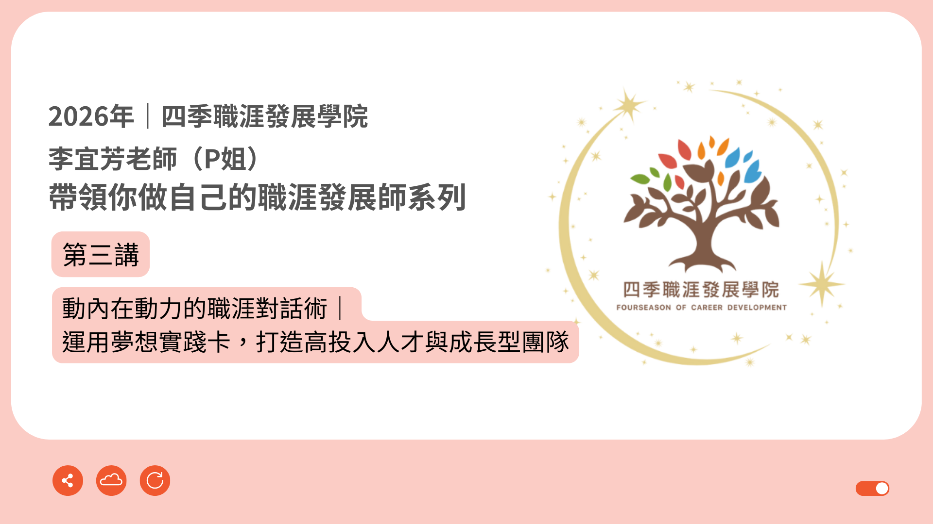 本課程透過「夢想實踐卡」:✅ 讓員工說出真正重視的價值 ✅ 建立工作與人生目標的連結 ✅ 激發內在動機 ✅ 建立主管可持續使用的對話框架