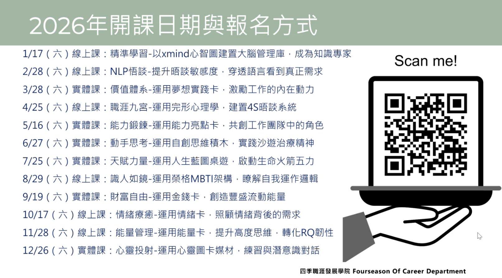 那麼,也該是時候整理這段「學-做-教-修-擔-讓」的歷程和智慧,來跟更多朋友分享…就在2026年(共振黃種子年),我將積攢了許久的觸動,化為這12堂系列課程,開放給大家參加…(真的是被大家敲碗,而特地抽空做此一班,因為課程幾乎都滿檔實在太忙碌了)
